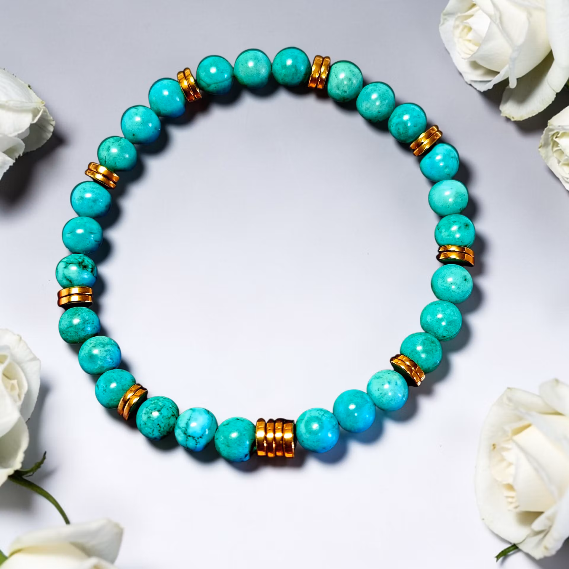 Färgskiftningar kan förekomma samt lite ojämnheter i pärlorna då det är natursten.